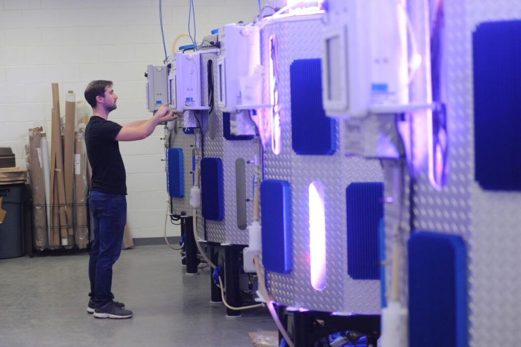 Computerized systems can detect even the slightest change in the growing tanks, and managers receive notification instantly if a problem arises. Hatchery manager Steven Weschler has an app on his phone that allows him to tap into any system remotely when needed. If an alarm goes off in the middle of the night, he knows it.