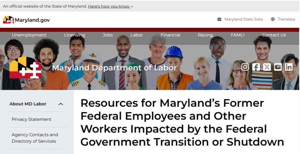 The Maryland Department of Labor’s website provides information on resources like unemployment insurance benefits, career guidance, reemployment support, and available loan programs.