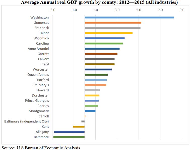 Crunching U.S. Bureau of Economic Analysis data, the Maryland Department of Commerce issued a report highlighting the GDP performance of Maryland and it’s local economies. Out of Maryland’s 24 county jurisdictions, Talbot was among the top ranked counties based on average annual real GDP growth, realizing a 4.4% increase from 2012 – 2015, the latest data available.