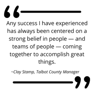 The New Year will bring a change of leadership at the highest levels of Talbot County government. On January 1, 2021, Talbot County’s Director of Emergency Services Clay Stamp steps into the role of county manager. His management experience combined with knowledge of local and state politics will serve him well as he takes the helm in his new position. TalbotWorks caught up with Clay on the eve of his new job. Read on to see what he has to say.