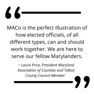 “It has changed the way I think,” Price says. “MACo is the perfect illustration of how elected officials, of all different types, can and should work together. We are here to serve our fellow Marylanders.”